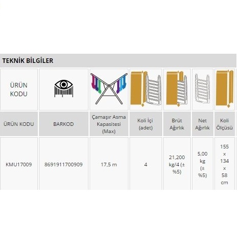 17.5 metre uzunluğa kadar asma kapasitesi.